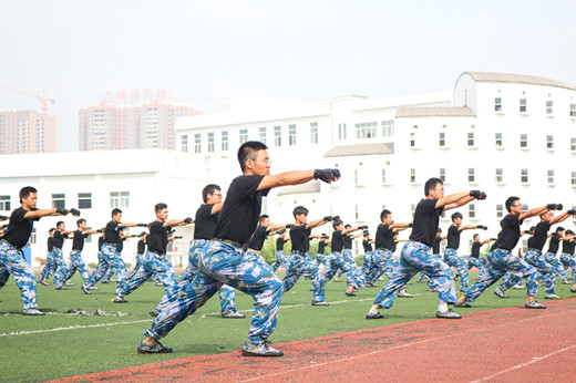 45个方阵踏着嘹亮的军歌,步伐整齐接受检阅。匕首操、刺杀操、学生叠被、男子擒敌拳四项汇报表演展示了我校2017级学生昂扬向上的精神风貌。