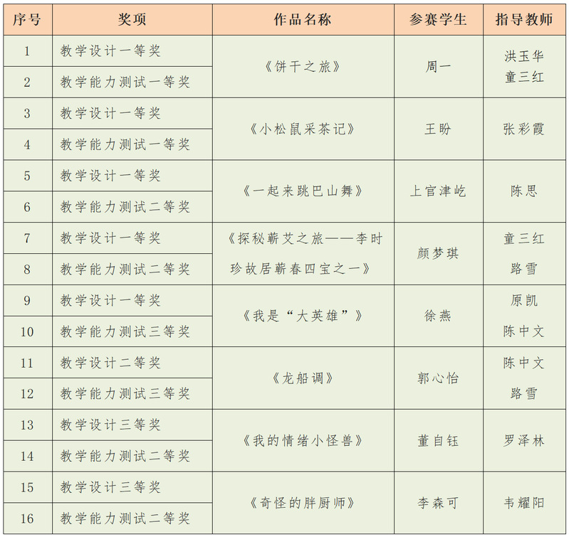 本网讯 近日,在山西师范大学举办的第十一届“华文”师范院校学前教育师范生教学能力测试与交流展示活动中,教育学院8名参赛选手进入决赛,经过激烈角逐,喜获奖项16项,其中教学设计一等奖5项、二等奖1项、三等奖2项;教学能力测试一等奖2项、二等奖4项、三等奖2项;获奖层次及数量均位参赛高校前列。