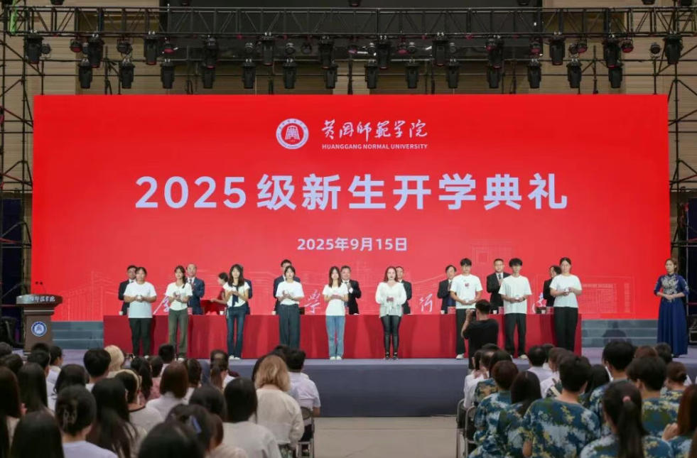 校徽是学校的象征,是黄师精神的载体,承载着学校厚重的历史与文化,也寄托着学校对同学们的期望。全体校领导为新生代表佩戴校徽,标志着2025级新生正式成为“黄师人”。