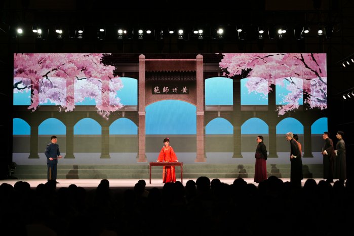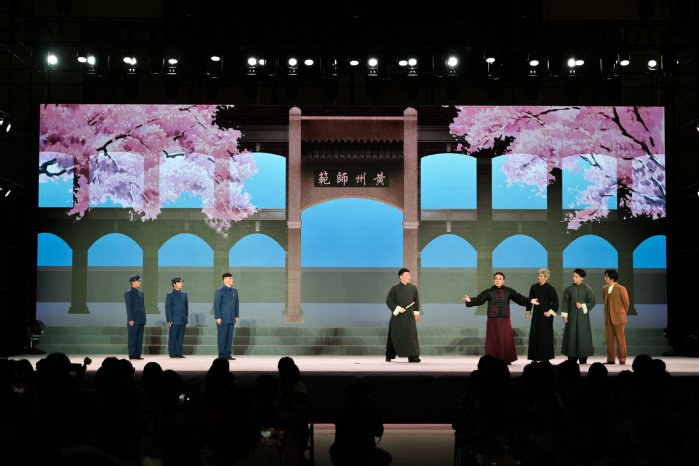 伴随着“一山复一山,一岭高一岭。学堂遍黄冈,处处读书声。百年老师范,代代铸师魂。初心似红烛,不畏霜天永放光明”的歌声,演出拉开帷幕。剧作一开始,同学们便被“黄师兰逃婚”深深吸引打动。随着剧情的发展,各种矛盾冲突演进,剧中人物肝胆柔情与满腔悲愤、不屈坚守和勇毅抗争相互交织,跌宕起伏的情节、感情充沛的表演、深厚独特的文化底蕴,激起同学们阵阵喝彩。
