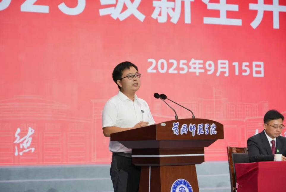 漆昌柱在讲话中介绍了学校的发展情况,勉励同学们以理想为帆,扬青春之舟,以创新为桨,踏时代之浪,书写属于自己的精彩黄师故事。对新生提出四点殷切期望:第一,与时代同频,与祖国同行,深刻认识身处伟大时代、变革时代和开放时代的特征,积极拥抱人工智能等新技术变革,培养国际视野和协作精神;第二,牢记校训,做到知行合一,从“厚德、博学、力行、致远”的黄师校训中汲取精神力量并转化为行动,以校友王立刚等优秀榜样为标杆,努力成长为国家的栋梁之材;第三,珍爱生命,坚守健康第一,以德育心、以智慧心、以体强心、以美润心、以劳健心,用乐观化解焦虑,用理性面对挫折;第四,尊师好学,不负大学时光,常怀“为学莫重于尊师”的敬畏之心,尊重老师的付出,珍惜课堂的每一分钟,在倾听与对话中真正走近学问、走向成长。